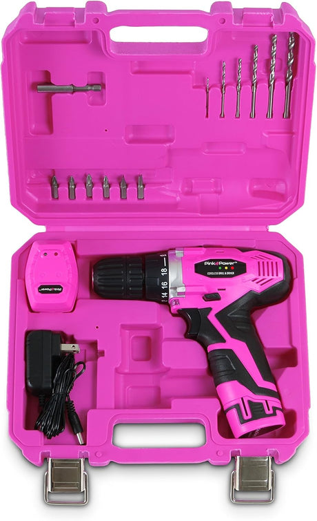 Pink Power Kit de Herramienta de Taladro-Destornillador Inalámbrico