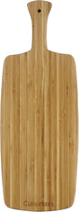 Upgrade your kitchen with this eco-friendly bamboo cutting board, designed for durability and versatility. The reversible 18.75" x 7.13" surface provides ample space for chopping fruits, vegetables, and cheeses, while the natural bamboo material protects your knife blades. Featuring a tapered handle for easy lifting and a lifetime warranty, it's both functional and stylish.