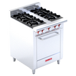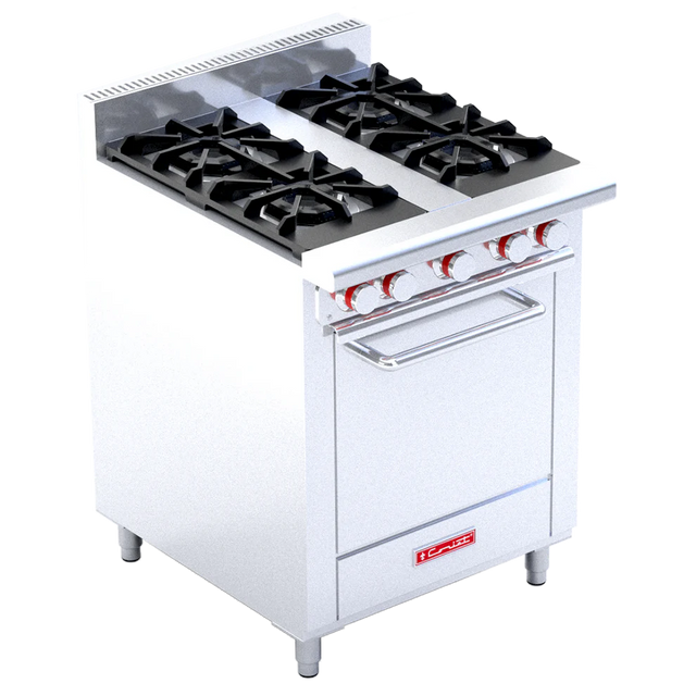 Este horno con quemadores abiertos es la combinación perfecta de potencia y funcionalidad para cocinas comerciales que requieren versatilidad en un espacio eficiente. Combina cuatro potentes quemadores de hierro fundido con un horno mediano de alto rendimiento, ofreciendo una solución integral ideal para restaurantes medianos, panaderías de concepto abierto o cocinas de hotel que necesitan cocinar, hornear y asar de manera simultánea y confiable.