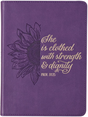 Celebrate faith and femininity with this elegant purple faux leather journal, featuring a stunning heat-debossed sunflower design and the inspiring verse: "She is clothed with strength & dignity" (Proverbs 31:25) in gold foil. Perfect for prayer journaling, gratitude lists, or personal reflection, this handy-sized book helps you stay connected to God’s Word daily.