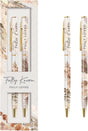 This elegant set includes two medium-point retractable ballpoint pens, each featuring a durable metal barrel with gold accents and smooth black ink. Measuring 5 inches long, the pens are beautifully designed with a white, gold, and earth-toned foliage pattern, inscribed with the uplifting messages "Fully Known" and "Fully Loved"—inspired by Psalm 139:2. Packaged in a coordinating gift box, they make a meaningful present for family, friends, or anyone in need of encouragement.